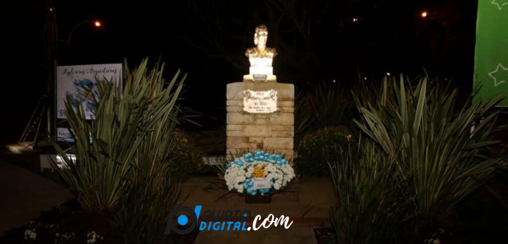 Durante las primeras horas del este lunes, desde la Comuna de Pujato colocaron flores en el busto que honra a Eva Duarte de Perón en el pueblo, a escasos metros de Ruta Nacional 33 y Lisandro de la Torre.