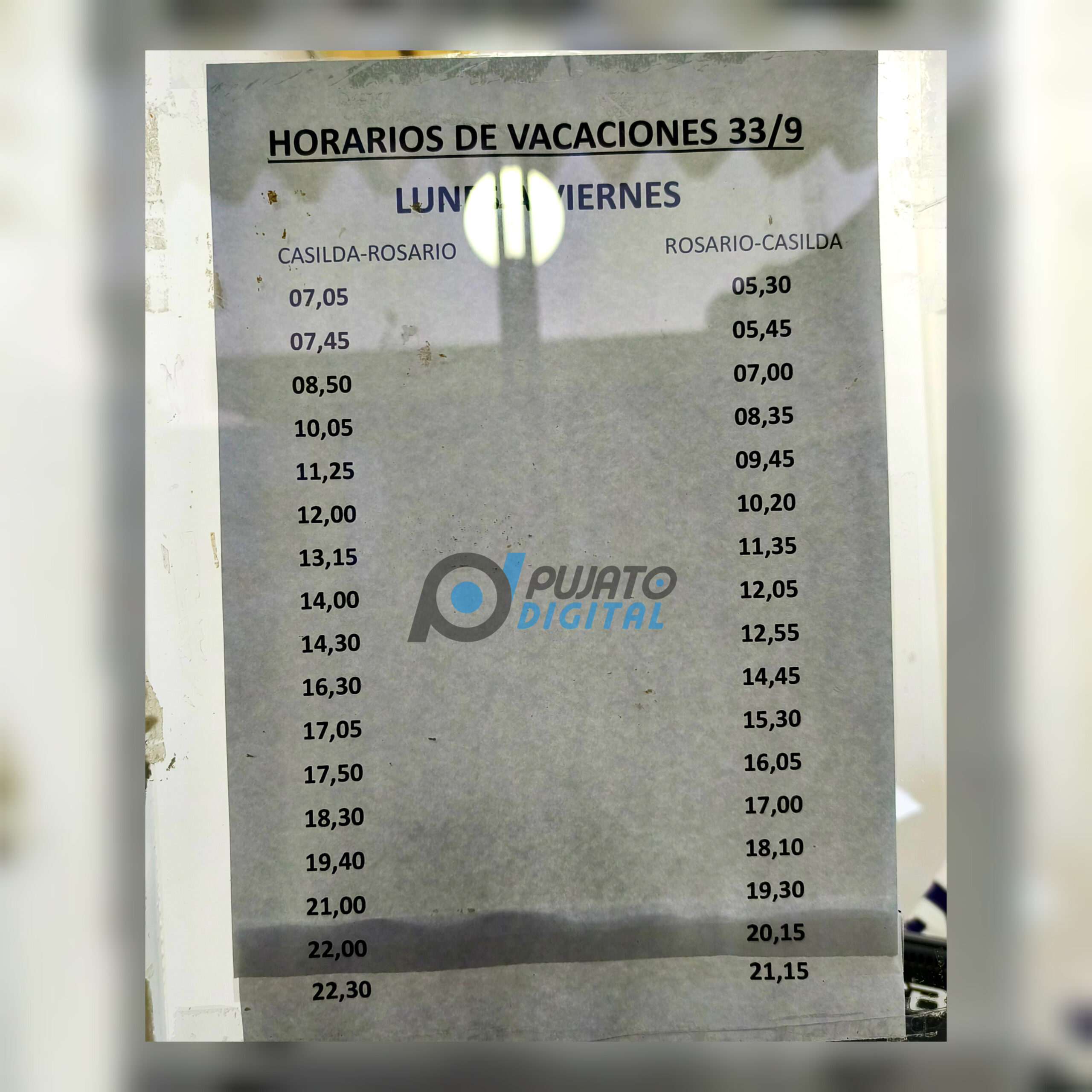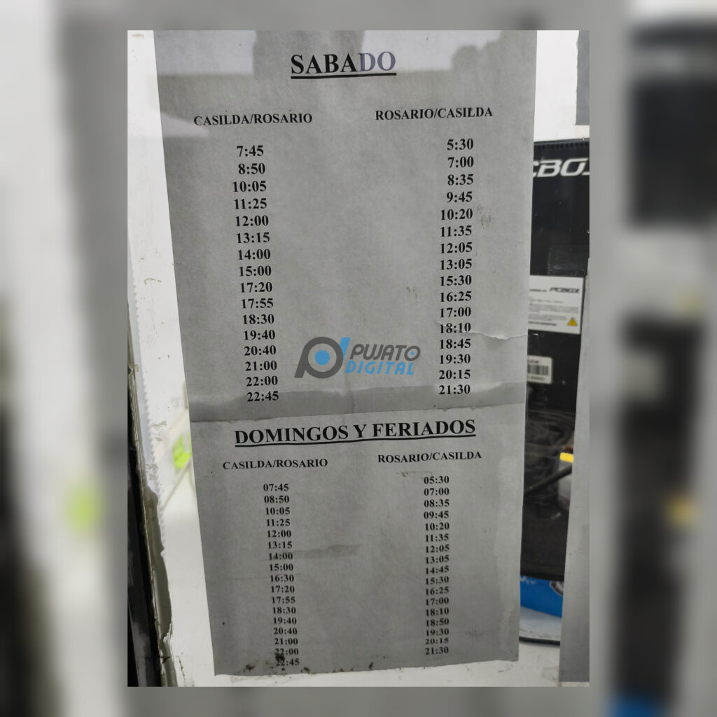 Los horarios pueden estar sujetos a cambios, en este artículo figuran aquellos difundidos por las empresas e inclusos en carteles en la terminal de Casilda. Sepan comprender de existir un error.