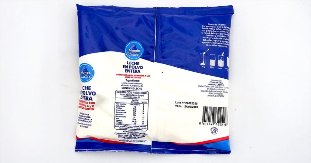 El Ministerio de Salud de la Provincia, a través de la Agencia Santafesina de Seguridad Alimentaria (Assal), prohibió en todo el territorio de la provincia de Santa Fe la tenencia, el transporte, la comercialización y exposición, de la leche en polvo entera fortificada con vitamina A y D Libre de Gluten de la marca Mundo Lácteo, elaborada por el Registro Nacional de Establecimiento Nº 2104-005711, con Registro Nacional de Producto Alimenticio Nº 04-075076, Razón Social CDMCBA SRL.Se debe a que los informes de laboratorio de la Assal determinaron que el valor de la materia grasa se encuentra por debajo del mínimo establecido por el Código Alimentario Argentino, por lo que el producto resulta adulterado.
