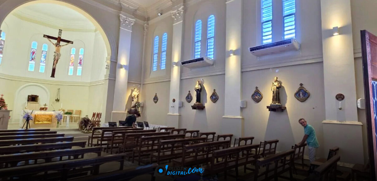 En la Parroquia céntrica local, Nuestra Señora del Carmen, se presentó este martes por la tardecita la restauración total del Templo con la importante suma de los aires acondicionados.