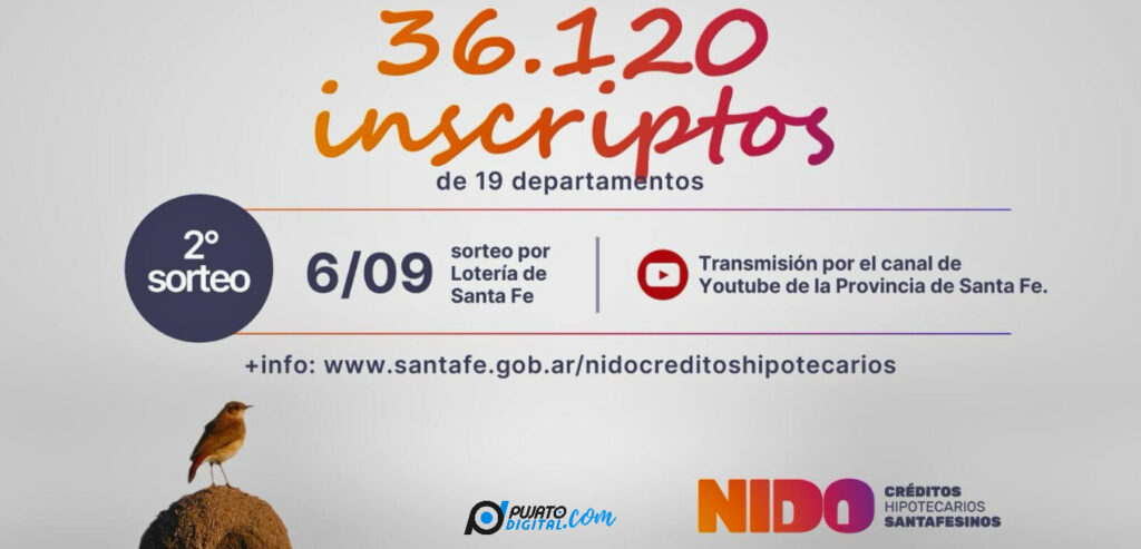 El nuevo sorteo se concretará el viernes próximo, a las 7.30, por Lotería de Santa Fe y será transmitido en directo por el canal de Youtube de Provincia. Se asignarán 175 nuevos créditos que se suman a los 230 que ya se asignaron en la primera instancia.Desde la administración de Créditos Nido se comunicarán vía mail a todas las personas aprobadas para brindarles detalles del sorteo y asignarles un número de referencia para participar.