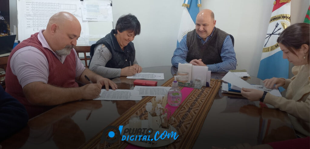 «Esta mañana concretamos una nueva firma de convenio a través del cual dos familias podrán tener su vivienda propia«, detalló el jefe comunal pujatense.