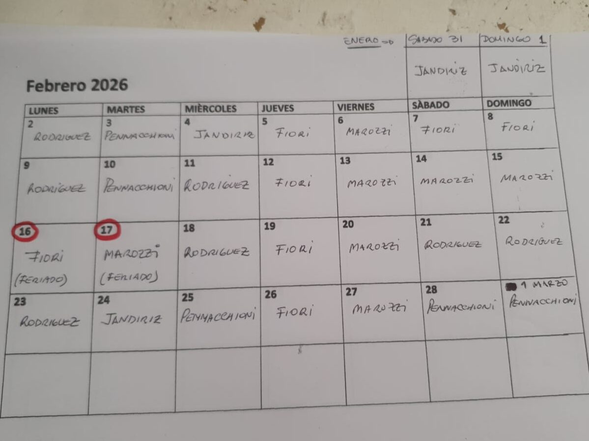 LUNES: Jandiriz; MARTES: Fiori; MIÉRCOLES: Marozzi; JUEVES: Rodríguez; VIERNES: Pennacchioni