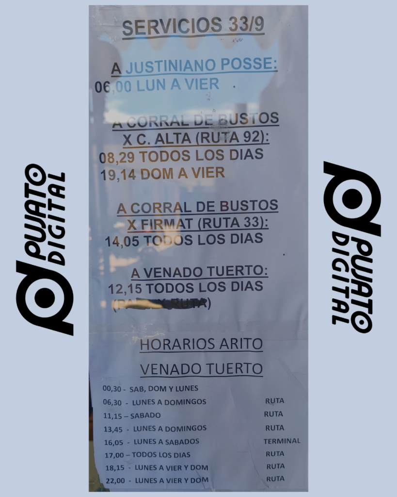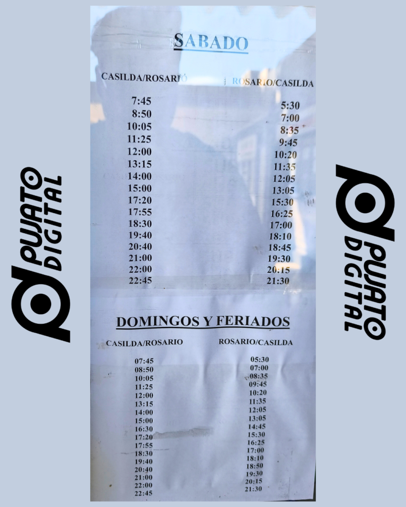 Los horarios pueden estar sujetos a cambios, en este artículo figuran aquellos difundidos por las empresas e inclusos en carteles en la terminal de Casilda. Sepan comprender de existir un error.