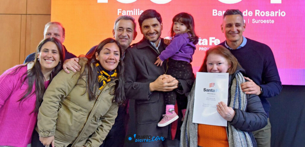 Con el objetivo del Gobierno provincial de garantizar los títulos de propiedad, el gobernador Maximiliano Pullaro, entregó este viernes escrituras a 150 familias de 34 barrios del noreste y sudoeste de Rosario. Durante la actividad, llevada a cabo en el Centro Municipal de Distrito Noroeste Olga y Leticia Cossettini, el gobernador afirmó que “es un orgullo enorme verlos en este día importante para nuestra política pública. Muchas personas trabajaron toda la vida para mejorar su casa, pero tenían la inseguridad jurídica de no tener su titularidad. Nosotros entendemos que eso es un derecho que tiene que llegar para que puedan tener esa seguridad jurídica. Ahora se la pueden dejar a sus hijos, a sus afectos y nada ni nadie se los va a poder quitar. Para nosotros eso es importante porque muestra todo el esfuerzo y el compromiso que han tenido durante tanto tiempo para tener su vivienda”.
