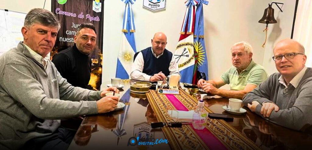 El presidente comunal de Pujato, Daniel Quacquarini recibió este martes en su despacho al vicepresidente de Agricultores Federados Argentinos (AFA), Raúl Cambertoni, al gerente de AFA Sub Centro Pujato, Osvaldo Casarini y al encargo de relaciones institucionales, Luis Contigiani.